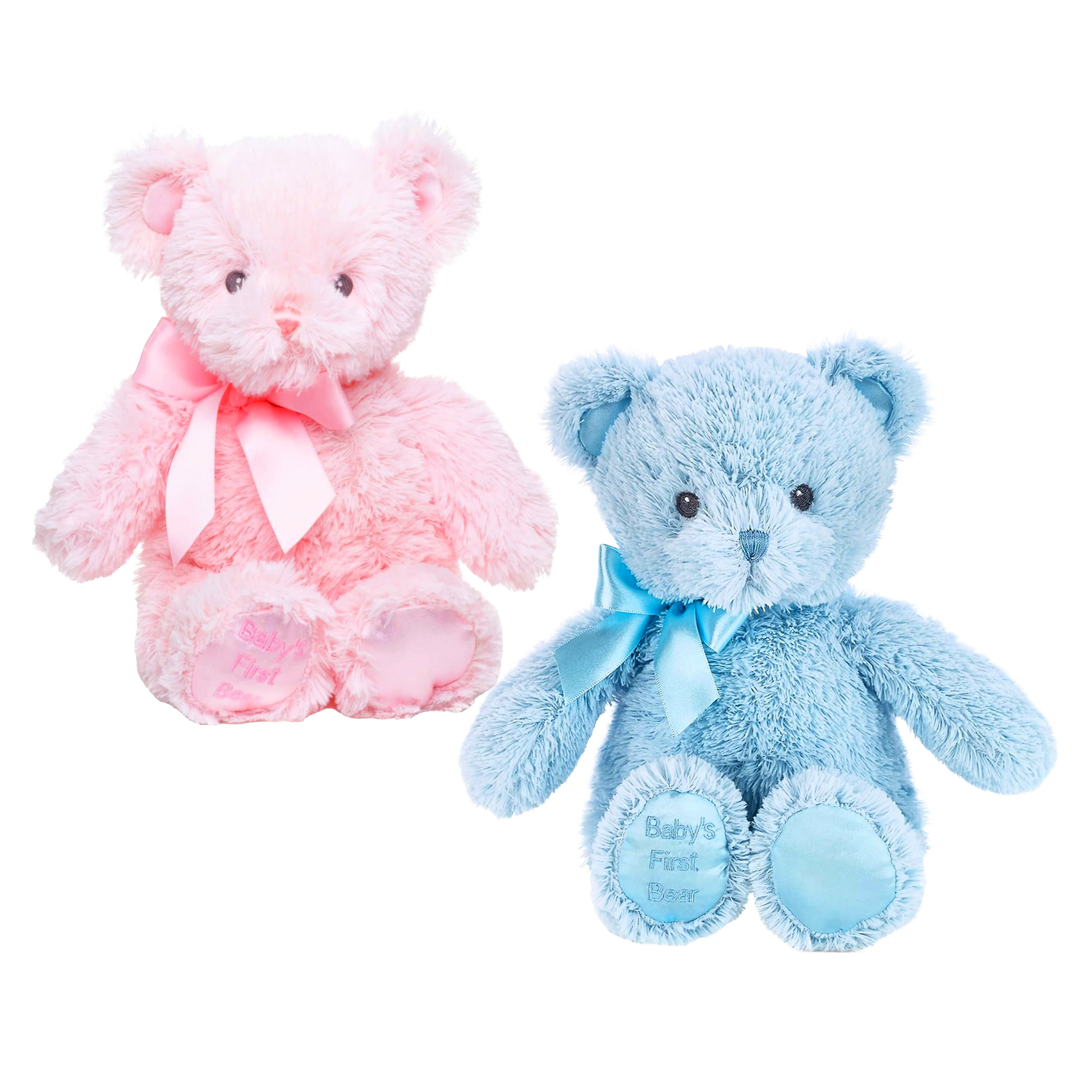 - This teddy is available in pink or blue and includes a coordinating satin ribbon.