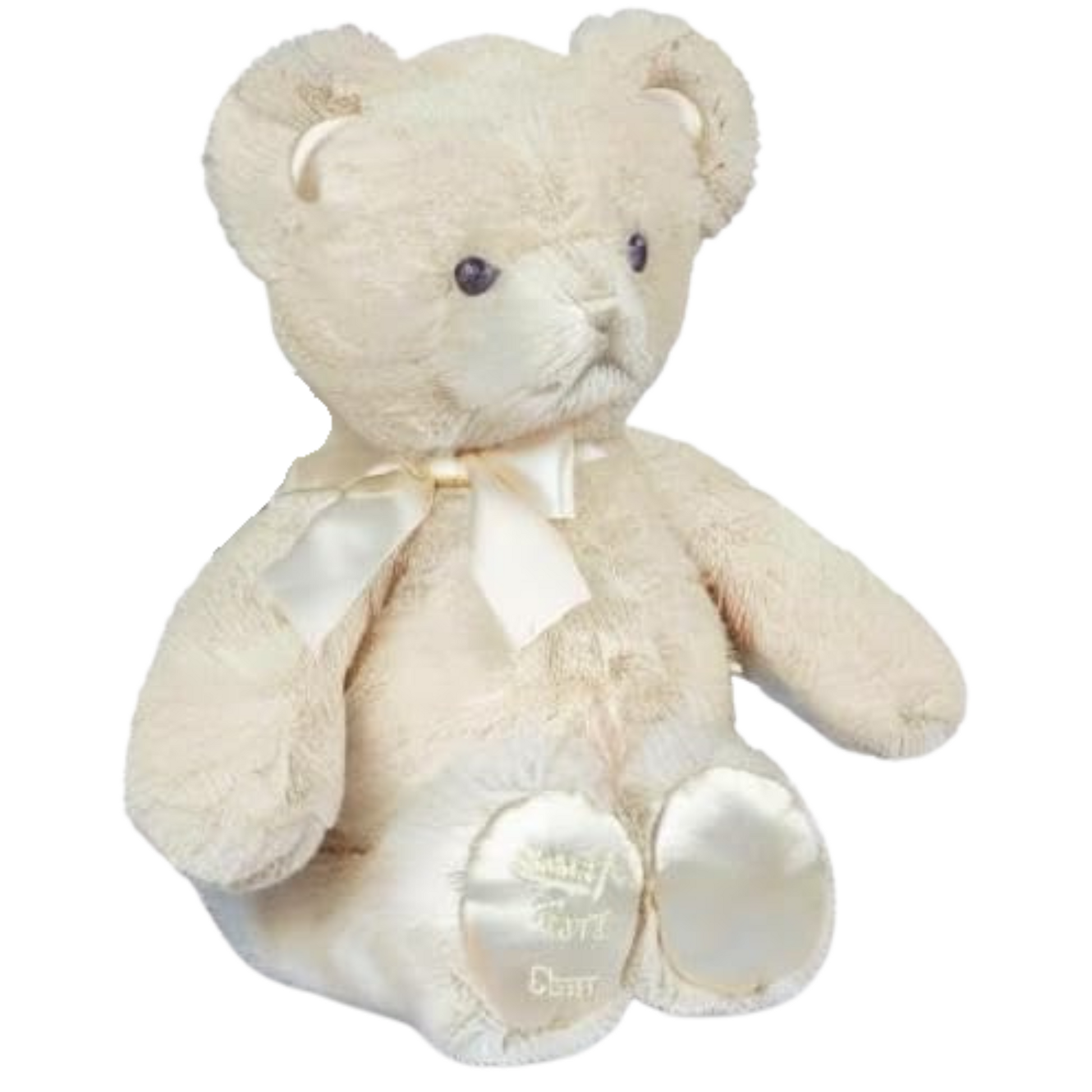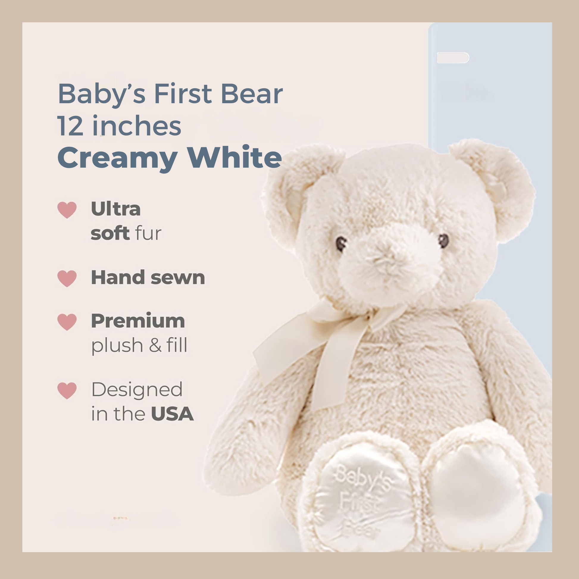Baby’s First Bear is one of the sweetest gifts that you can give to a newborn baby. This classic, hand-sewn 12inch bear will surely become a cuddly favorite in the crib and well beyond. The premium fluffy, plush and soft fur is gentle not only for a newborn nursery, but as a comforting friend to carry as the child grows. The embroidered facial features are safe, and the silk embroidered foot announcing “Baby’s First Bear” offers a traditional message.