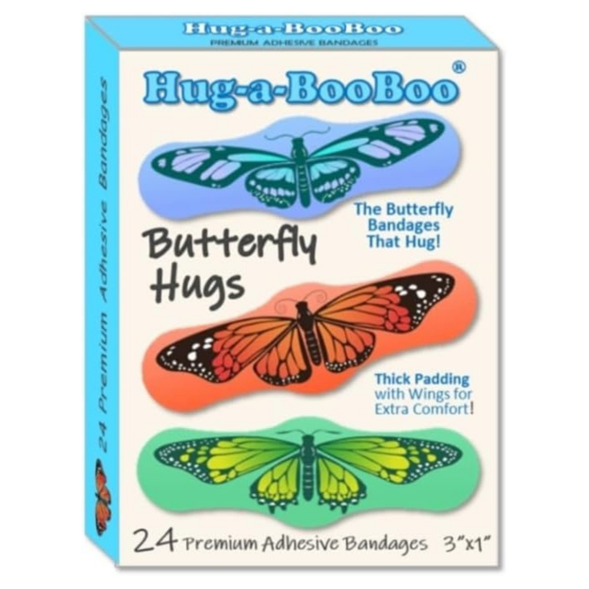 For some children, a little boo-boo may be a traumatic (or dramatic) event. These beautiful Butterfly Hug Sterile Adhesive Bandages are sure to turn tears into smiles of comfort. Each box contains 24 premium bandages in 4 beautiful, natural designs and colors. Each bandage has special padding and wings so they can fit multiple would sizes. Something so simple can surely heal a small wound and a wounded spirit.