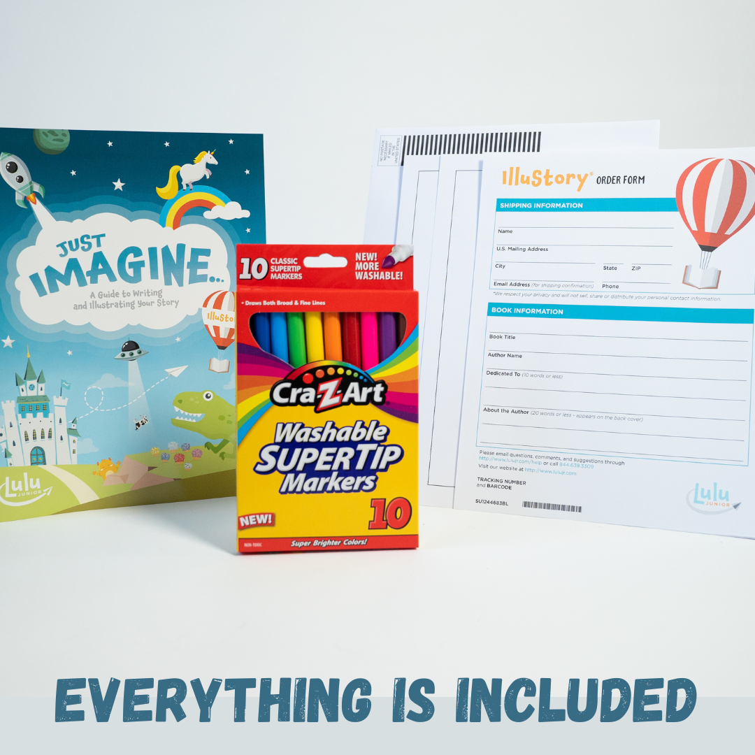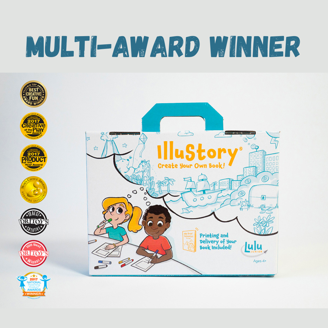 lluStory - Create Your Own Book! gives young authors and illustrators the opportunity to write, illustrate and publish their very own hardcover book! It’s simple. Everything you need is inside the kit and the price also includes the production and delivery of the finished book. Use the pages inside the kit to write and illustrate your own story. Once completed, mail the “manuscript” using the pre-paid envelope. In just 2-3 short weeks the child receives a published full-color/bound 7" x 9" hardcover book with up to 20 pages including a dedication page, a title page and an "About the Author" page. IlluStory has been a top choice for creative and imaginative children since 1993. This item has been recognized with over 14 educational, parenting and toy and industry awards!