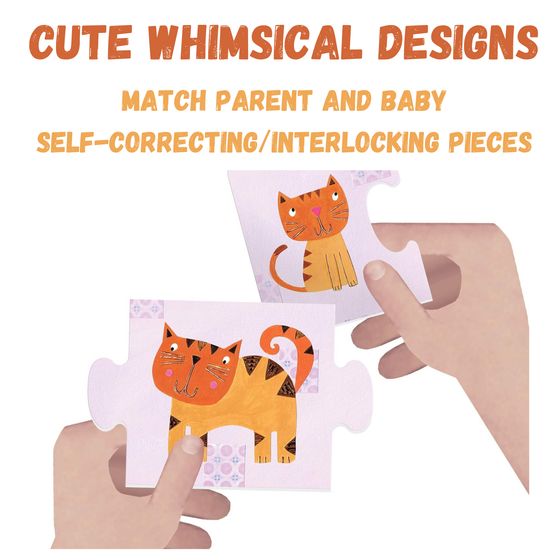 Children begin to learn about logical thought and develop their logical-mathematical intelligence as early as two or three years of age. This fun puzzle set matches cute and whimsical animals with their babies and their favorite foods. Each puzzle set contains three interconnecting pieces. Children can identify the correct pieces by color, illustration, or exact fit. This puzzle set also offers an early introduction to our natural world and the animals that live in it.