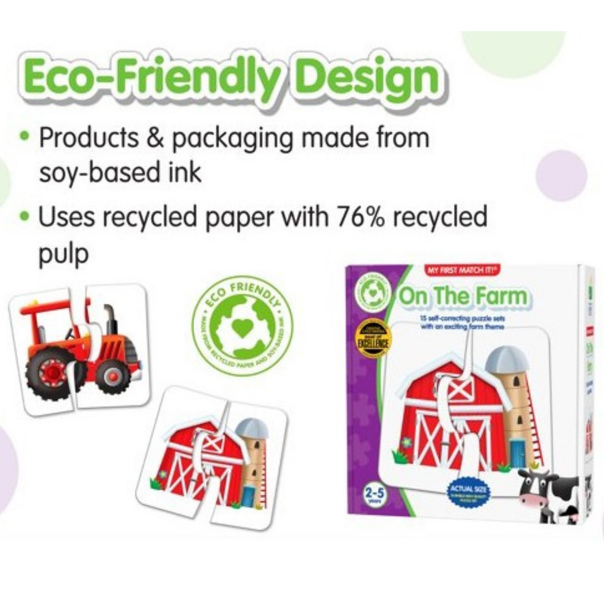 - Set includes 15 self-correcting puzzle sets. Made from eco-friendly materials including recycled paper and soy-based ink.