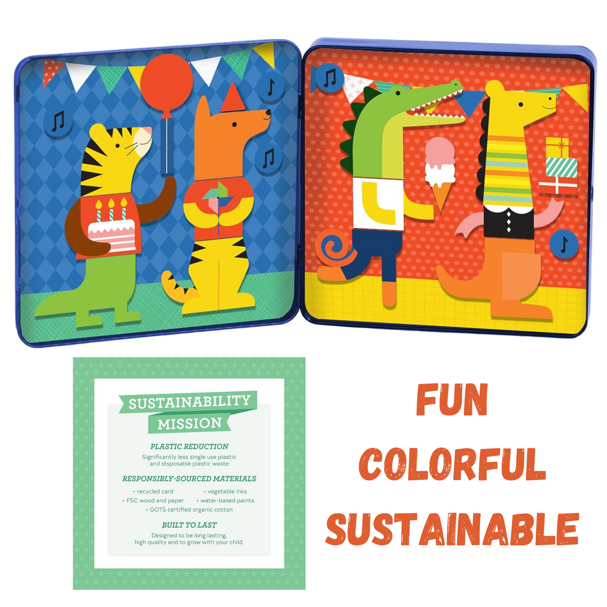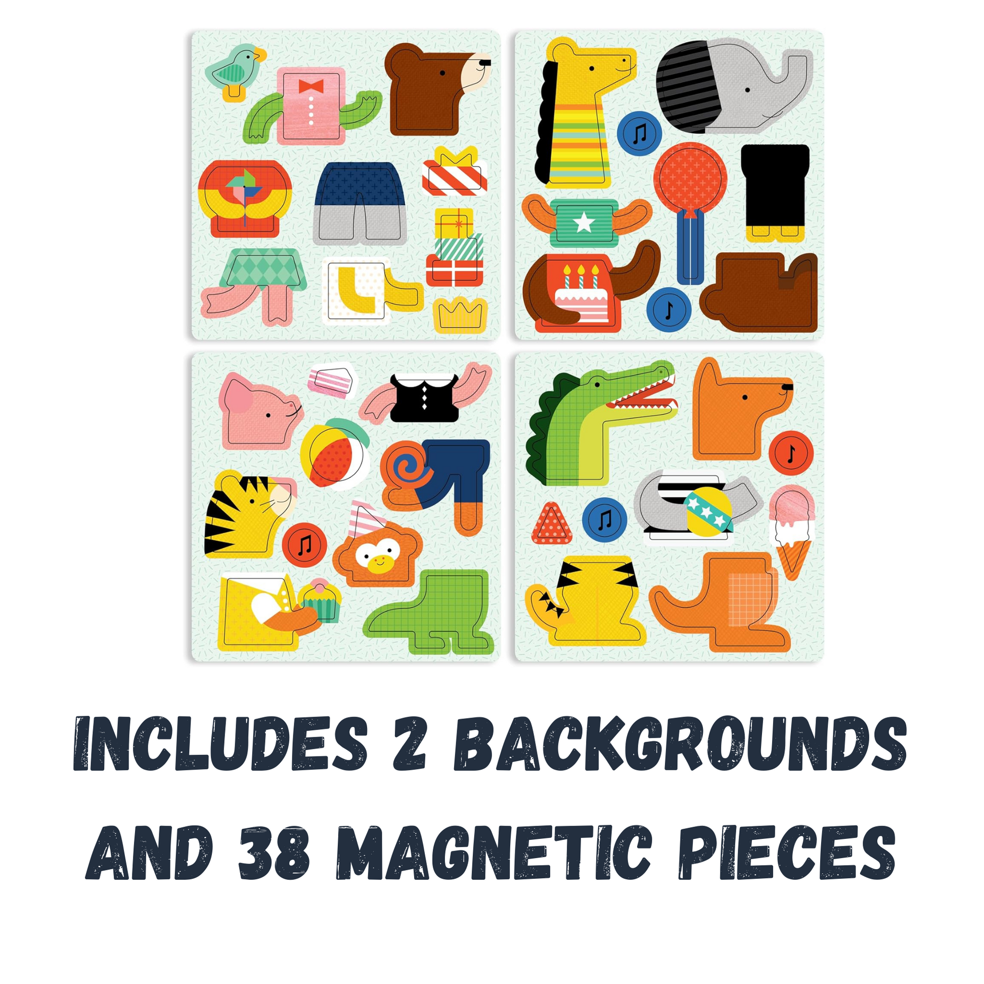 It’s time to celebrate with this on-the-go magnetic playset. Create fun and silly animals heading to a party with this mix and match set. Over 100 combinations of amusing characters and the props they are bringing to the gathering. Makes for a great birthday gift, or to have on hand to entertain younger guests at your next social event, or to introduce the concept of special events.