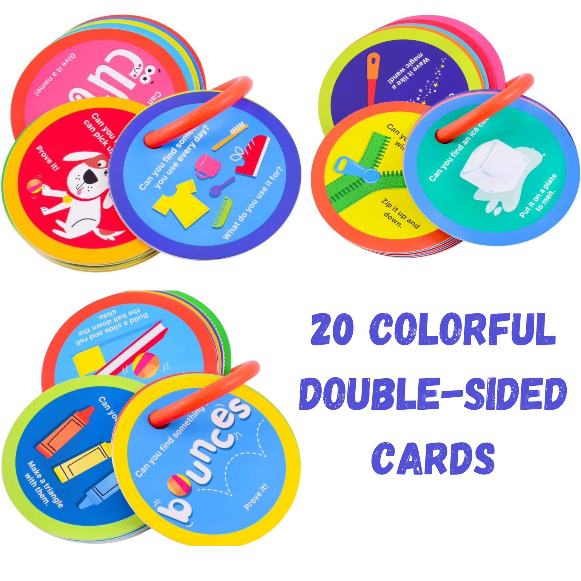 - Includes 20 double-sided sturdy cards and instructions secured on a durable plastic ring for easy portability.