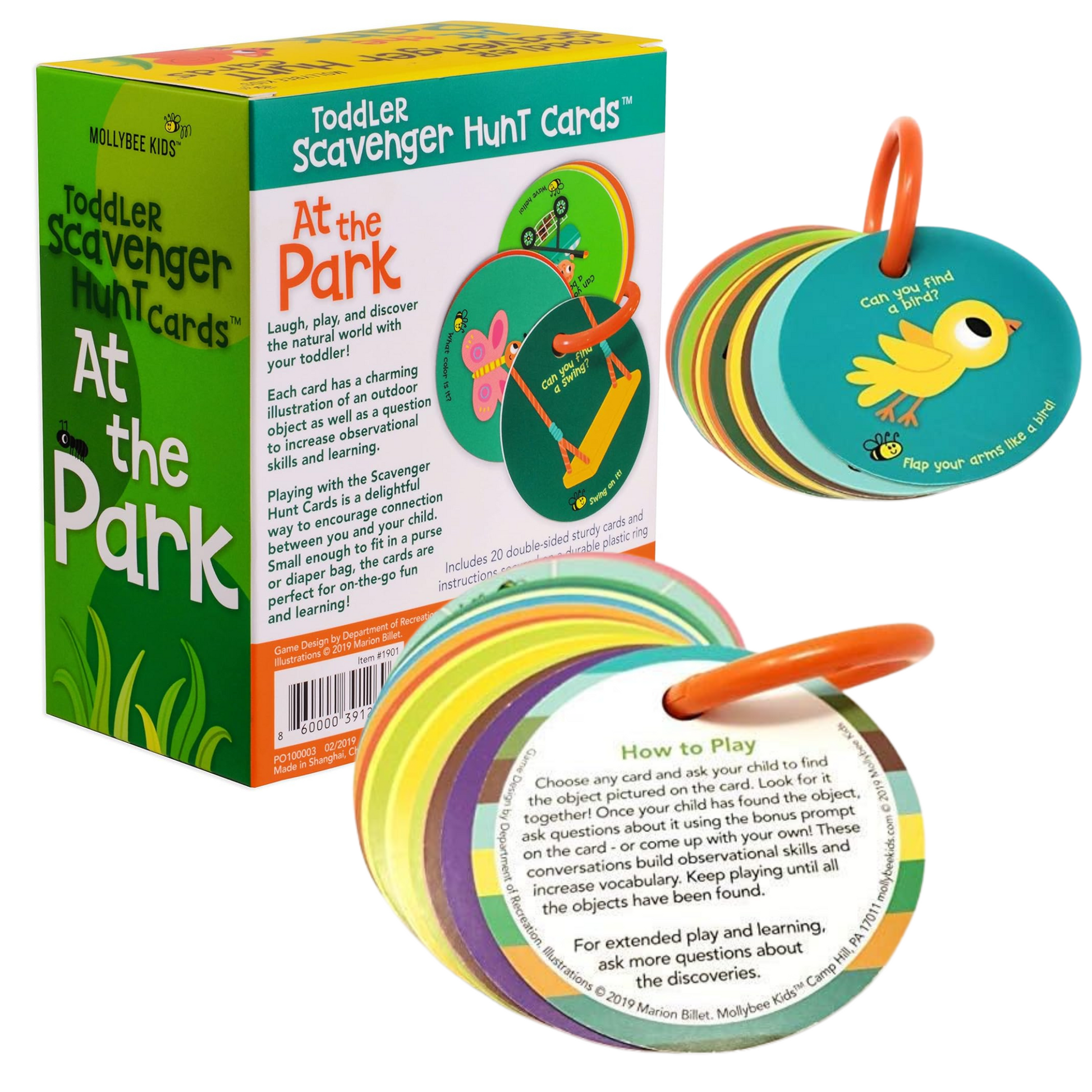 Going to the park? If so, you’ll want to take along these fun and engaging scavenger hunt cards for toddlers. What a fabulous way to discover the natural world! Each card has a cute illustration of an outdoor object as well as a question to increase observation skills and learning. Toddlers, especially, can start to develop early literacy skills, memory and thinking skills with this game as well.