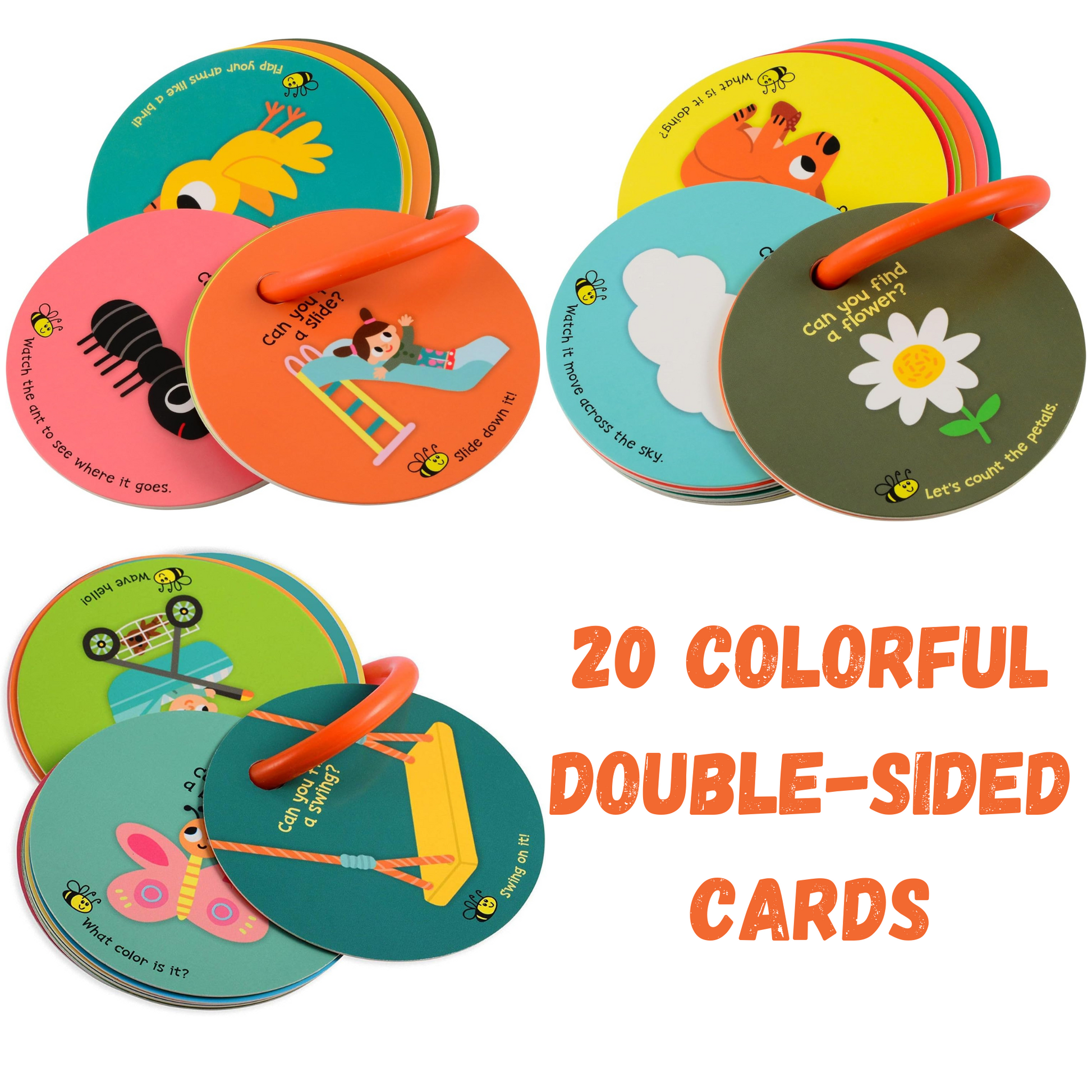 Includes 20 double-sided sturdy cards and instructions secured on a durable plastic ring for easy portability.