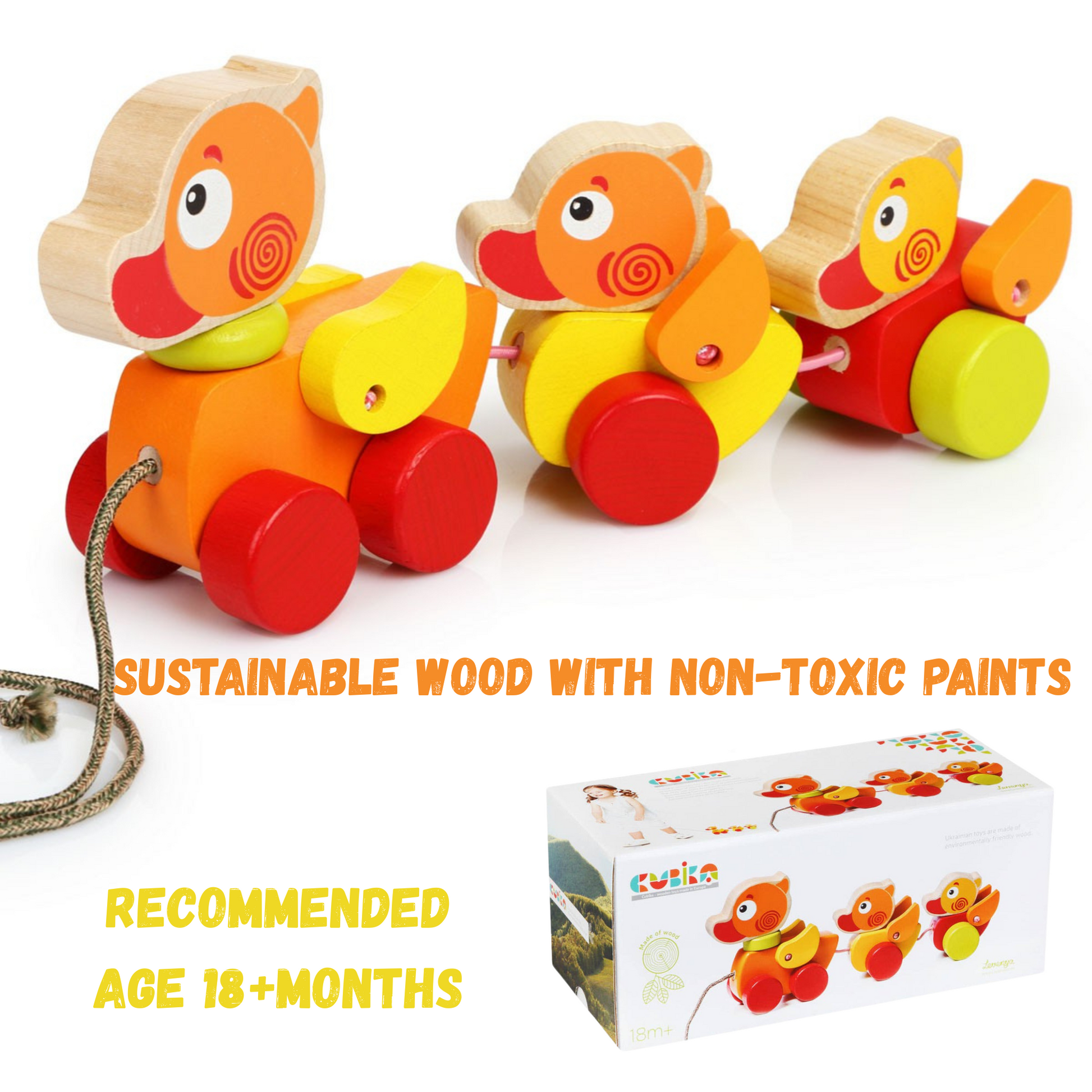 - Pull toys are a great way to introduce initiative and early self-control skills.