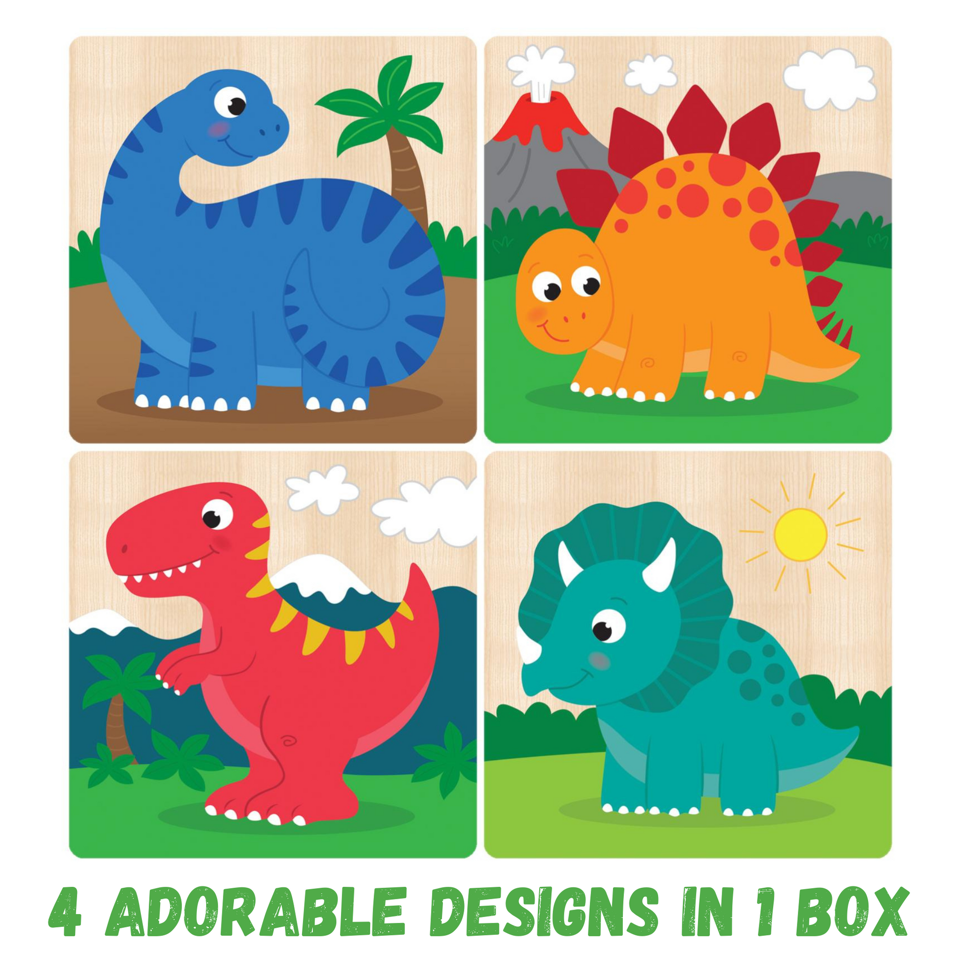 Wooden Chunky Dinosaur Puzzle Set of 4