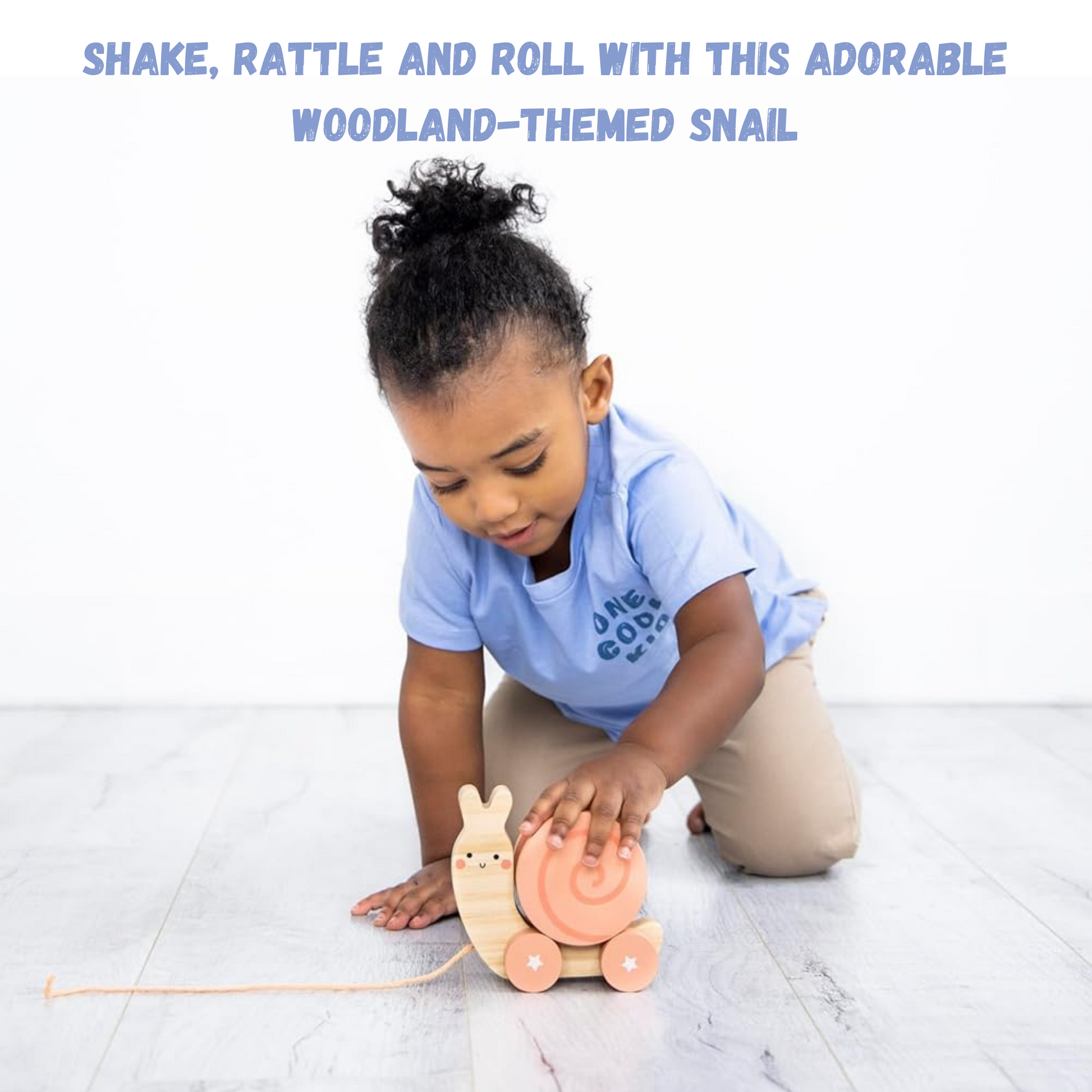 - Set includes wooden snail body with 12in string and detachable rattle shell with colorful balls. Adult supervision recommended during play.