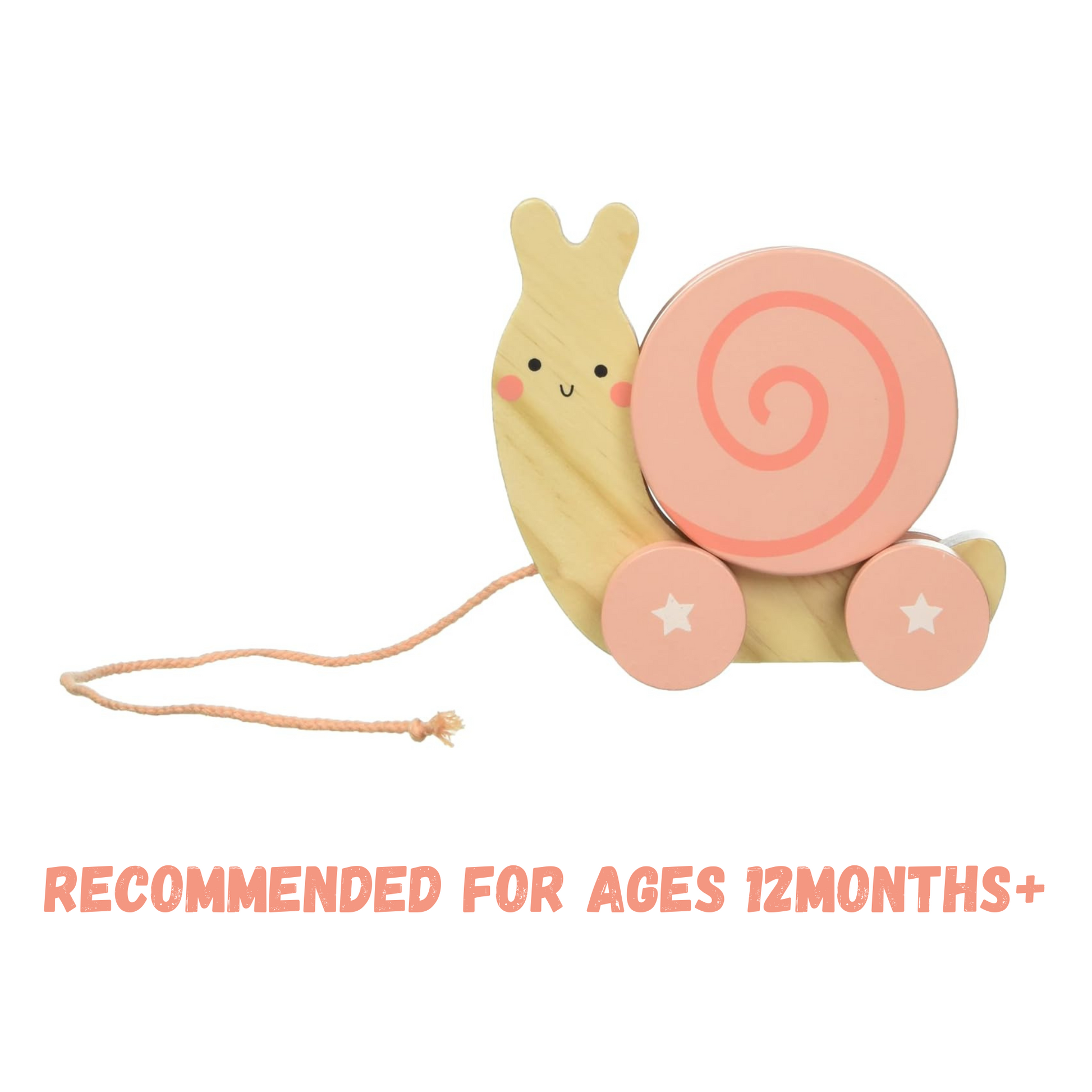 Pulling, rolling and interacting with this adorable woodland-themed toy is sure to bring smiles to earliest learners. Designed with rounded corners and an attached pull-string, this sustainable wooden snail is the perfect size for little hands. Pull toys are a wonderful choice to help develop motor skills, problem solving, hand eye coordination, imagination and sensory play. This adorable, whimsical snail also features a removeable wooden shell that doubles as a rattle for extra excitement and exploration. Shake, rattle and roll! A terrific gift option for baby’s first birthday.