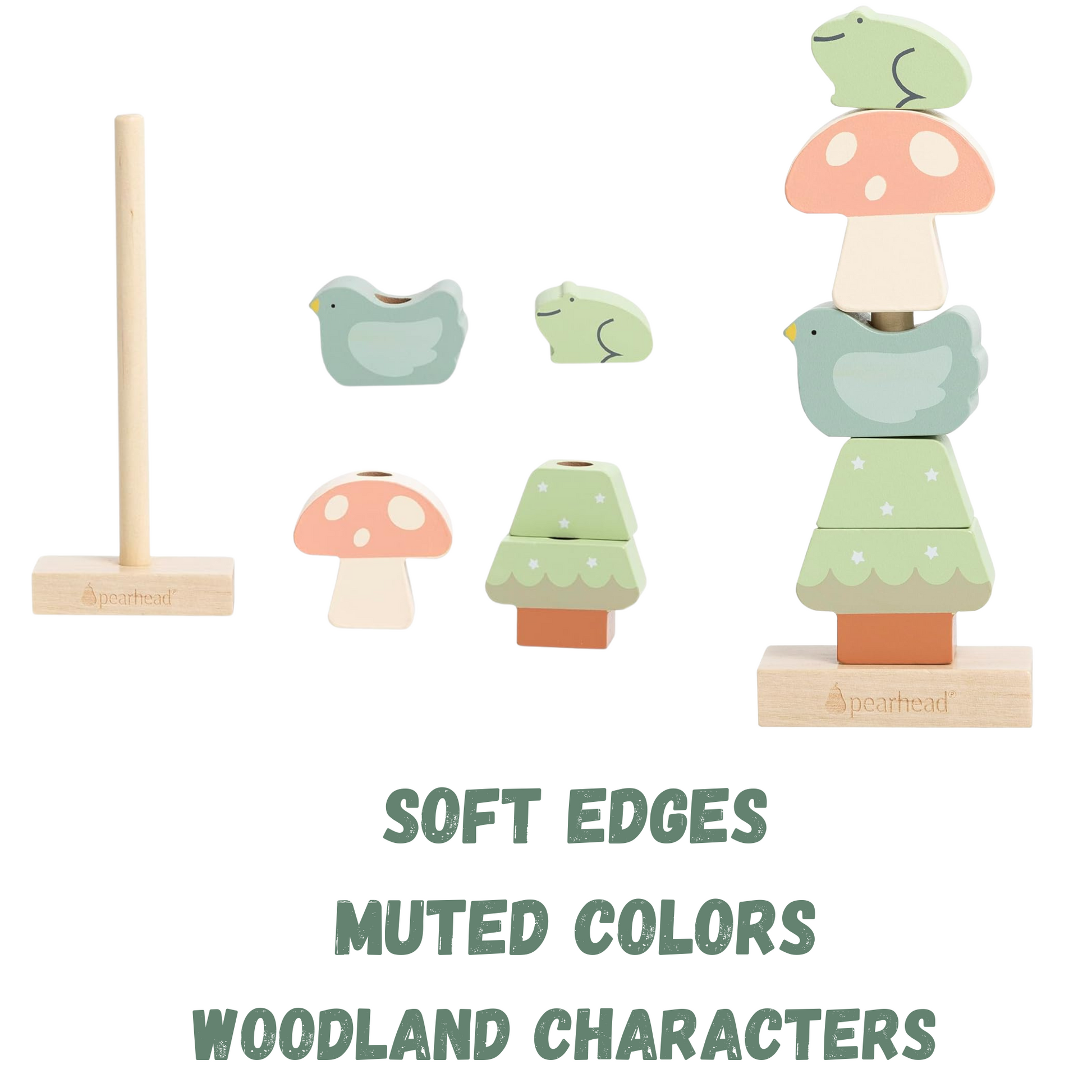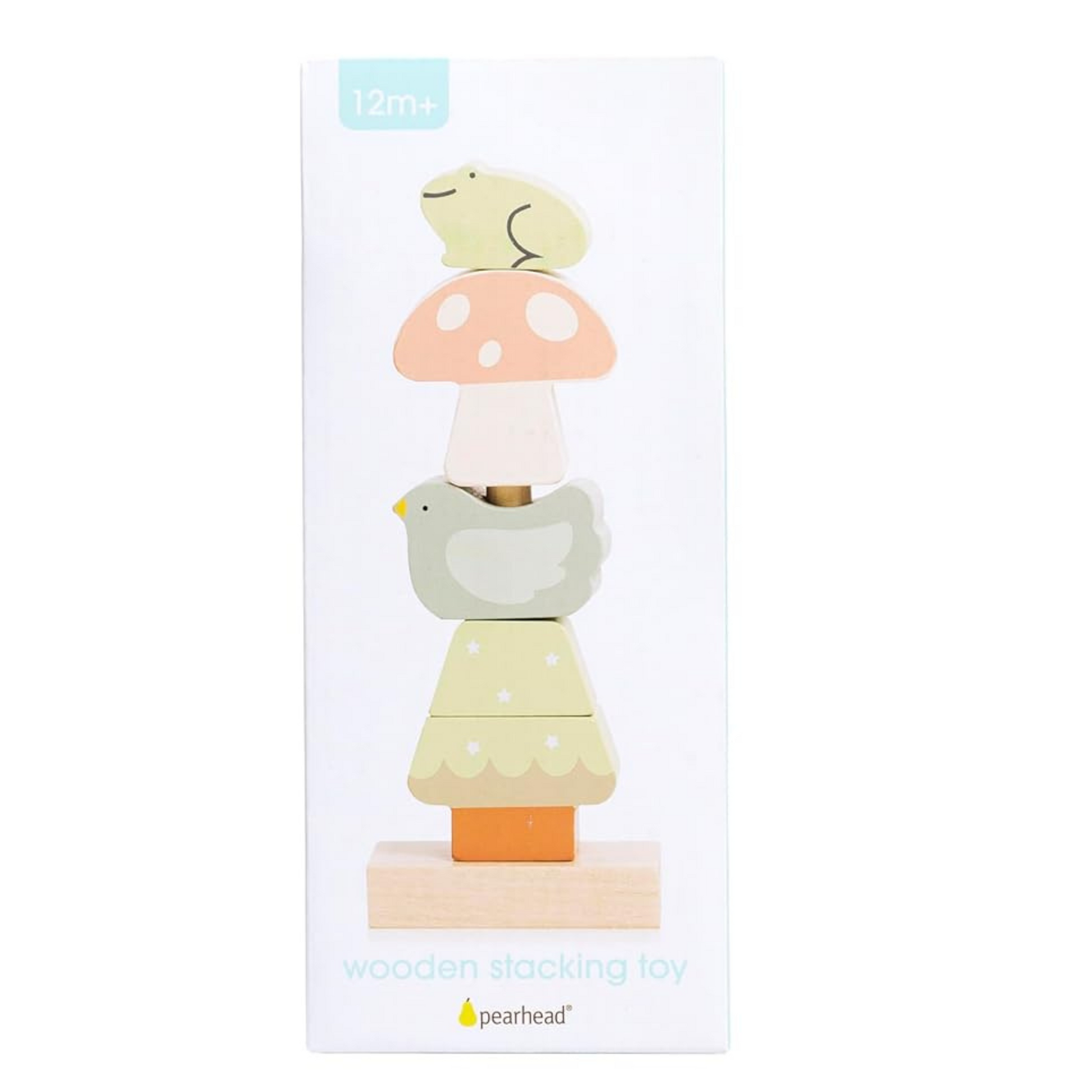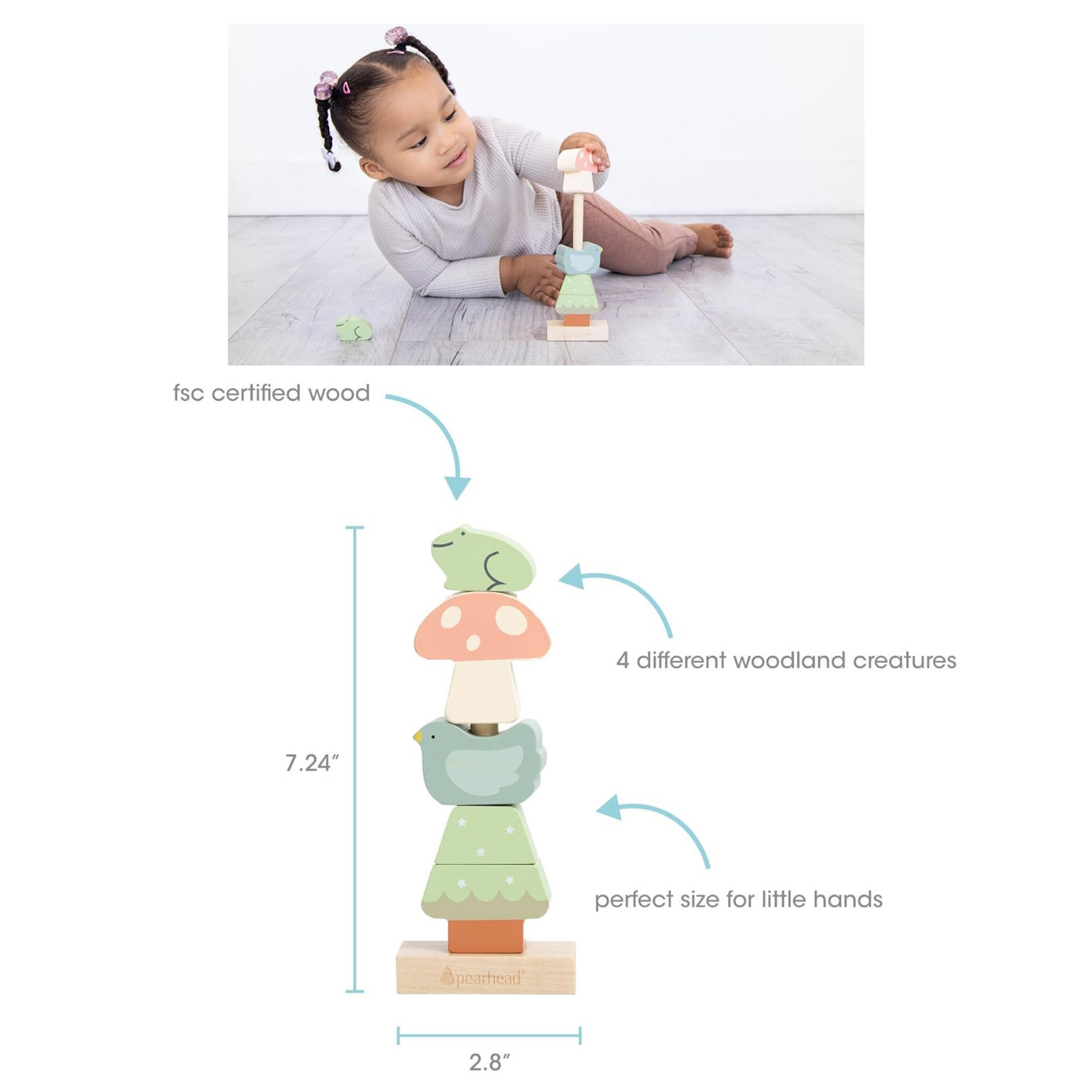 Stack and play all day long with this charming woodland-themed stacking toy. Both an exciting and an engaging learning tool - this wooden stacking toy helps little ones develop their motor skills and coordination while also having fun. This sustainable wooden toy features 4 earth-toned characters: a frog, mushroom, bird, and 2-piece tree. Each creature can be stacked onto the wooden peg base or used creatively in imaginative play. The stackable pieces range in size but are all designed to fit tiny hands. Help our youngest learners embrace the natural world with this very special learning gift.